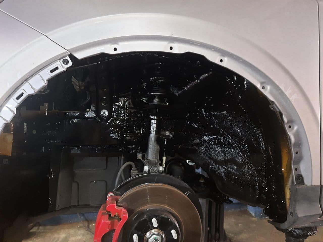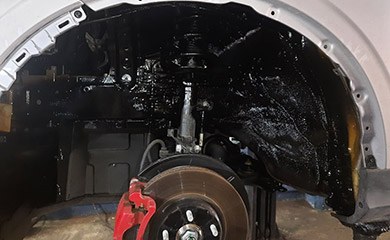 Обработка колесных арок и днища выполняется аналогичным методом, но у же совсем другими составами – эти элементы подвержены абразивному воздействию, т.е. со временем они истираются. Для получения максимальной защиты данных кузовных компонентов применяется битумное антикоррозийное покрытие, обладающее повышенной износоустойчивостью.